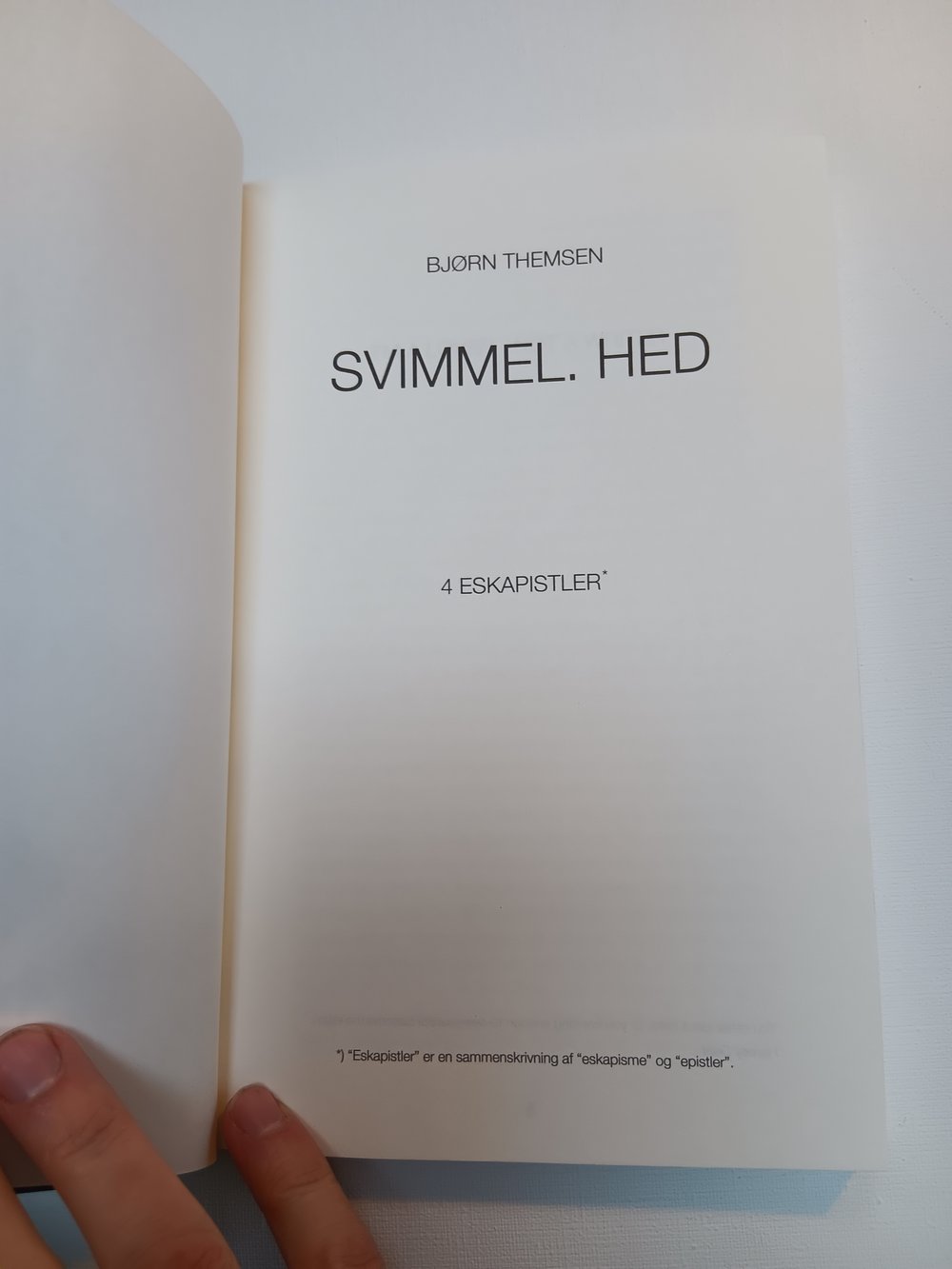 Bjørn Themsens bog SVIMMEL. HED foregår både i nutidens København, i København i 1955, i Ukraine i 2022, i Tyskland kort efter murens fald og i Congo i 1890. Den består af fire “eskapistler” — en sammentrækning af ordene Eskapisme og Epistler — og bindes sammen af et gennemgående tegneserie-tema. Tegner Tom Kristensen har bidraget med en hel tegneserie inde i bogen, der på forskellig vis undersøger temaer som grænser, erindring og tab.